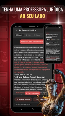 اس کے علاوہ، "Direito" ایک جامع 'عدالتی فیصلوں کے ڈیٹا بیس' اور عملی 'قانونی ٹیمپلیٹس' بھی فراہم کرتا ہے جو آپ کے قیمتی وقت اور محنت کی بچت کرتے ہیں۔ ہماری 'مصنوعی ذہانت پر مبنی قانونی معاونت' آپ کے سوالات کا فوری جواب دیتی ہے، جبکہ 'قانونی لغت' کسی بھی اصطلاح کی فوری وضاحت پیش کرتی ہے۔ 'قانونی کیریئر' کے سیکشن میں پیشہ ورانہ راستے تلاش کریں اور 'روزمرہ قانون' کے تحت تازہ ترین قانونی تبدیلیوں اور اہم کیسز سے باخبر رہیں۔ یہ ایپ برازیلی حکومت کی ویب سائٹ (https://www4.planalto.gov.br/legislacao) سے قوانین کے لیے ڈیٹا حاصل کرتی ہے، تاہم، "Direito" کسی حکومتی ادارے کی نمائندگی نہیں کرتا۔