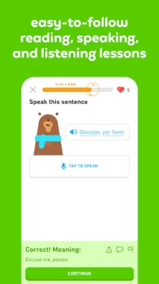 Duolingo کو اس کی منفرد افادیت اور تفریح کے لیے جانا جاتا ہے۔ اس کے گیم جیسے اسباق اور دلچسپ کردار بولنے، پڑھنے، سننے اور لکھنے کی مضبوط مہارتیں پیدا کرنے میں معاون ہیں۔ سیکھنے کے ماہرین کی تیار کردہ، Duolingo کی تدریسی حکمت عملی سائنسی طور پر ثابت شدہ ہے جو طویل مدتی علم کو برقرار رکھنے میں مدد کرتی ہے۔ روزانہ کی مشق کو اپنی عادت بنا کر، آپ رنگین انعامات اور کامیابیوں کے ذریعے اپنی پیشرفت کو باآسانی ٹریک کر سکتے ہیں۔ لاکھوں سیکھنے والوں کی عالمی برادری میں شامل ہوں اور مسابقتی لیڈر بورڈز کے ساتھ متحرک رہیں۔ سب سے بہتر بات یہ کہ Duolingo پر ہر زبان کا کورس مفت ہے، اور اب آپ ریاضی، موسیقی اور شطرنج کے نئے کورسز بھی دریافت کر سکتے ہیں۔