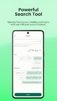 'Easy Quran Wa Hadees' ایک انتہائی طاقتور اور ذہین سرچ فنکشن سے آراستہ ہے، جو آپ کو قرآن و حدیث کے وسیع مواد میں کسی بھی موضوع یا مطلوبہ معلومات کو لمحوں میں تلاش کرنے کی سہولت دیتا ہے۔ چاہے آپ کسی خاص آیت، حدیث، یا کسی فقہی مسئلے کے بارے میں جاننا چاہیں، یہ فیچر آپ کی رسائی کو فوری اور مؤثر بناتا ہے۔ یہ ایپ اپنے جامع مواد اور صارف دوست انٹرفیس کے ساتھ، آپ کے علمی و روحانی سفر کو روشن اور آسان بنانے کے لیے تیار کی گئی ہے۔