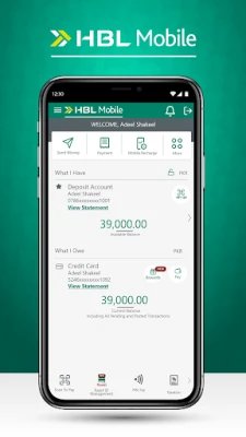 HBL Mobile آپ کی جدید مالی ضروریات کا ایک مکمل حل پیش کرتا ہے، جو آپ کو بینکنگ کی تمام سہولیات ایک نئی سطح پر فراہم کرتا ہے۔ اپنی انگلیوں پر اپنے اکاؤنٹس اور HBL کریڈٹ کارڈز کے تفصیلی اسٹیٹمنٹس دیکھیں اور بآسانی ڈاؤن لوڈ کریں۔ آپ اپنی تمام مالی سرگرمیوں کا ریکارڈ، یعنی ٹرانزیکشن ہسٹری، کسی بھی وقت باآسانی ملاحظہ کر سکتے ہیں۔ مالی شفافیت اور کنٹرول اب آپ کی دسترس میں ہے۔
