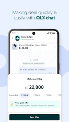 OLX پر اپنی اشیاء کی فہرست بنانا اور انہیں فروخت کرنا محض چند سیکنڈ کا کام ہے۔ اپنی استعمال شدہ یا غیر ضروری چیزوں کو بیچ کر فوری نفع کمائیں اور اپنی مرضی کے سودے تلاش کریں۔ OLX کا سادہ، پر لطف اور بدیہی ڈیزائن آپ کو اپنے اردگرد موجود بہترین مواقع دریافت کرنے یا کسی مخصوص چیز کی تلاش میں مدد دیتا ہے۔ آپ اپنی غیر مطلوبہ اشیاء کو فوری طور پر اپنے فون سے بیچ سکتے ہیں، اپنے پڑوس میں تصدیق شدہ بیچنے والوں کو تلاش کر سکتے ہیں، اور براہ راست چیٹ کے ذریعے محفوظ طریقے سے سودے طے کر سکتے ہیں۔ چلتے پھرتے اپنے اشتہارات کا انتظام اور ان میں ترمیم کرنا بھی انتہائی آسان ہے۔ آپ اپنی دلچسپیوں کی بنیاد پر ذاتی نوعیت کی تجاویز اور اطلاعات بھی حاصل کر سکتے ہیں۔