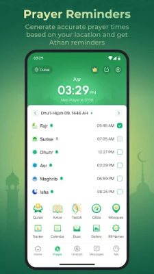 WeMuslim آپ کی روزمرہ کی روحانی ضروریات کے لیے ایک جامع ساتھی ہے۔ یہ آپ کی موجودہ جگہ کی بنیاد پر نماز کے انتہائی درست اوقات فراہم کرتا ہے، اور ہر نماز سے پہلے روح پرور اذان کی آواز گونجتی ہے تاکہ آپ کبھی کوئی فرض نہ چھوڑیں۔ WeMuslim کے ساتھ، آپ اپنی نمازوں کو وقت پر ادا کرنے کے لیے مستند یاد دہانیاں حاصل کرتے ہیں۔ اس کے علاوہ، قرآن کریم کا شعبہ آپ کو متعدد مشہور قاریوں کی دلکش تلاوتیں سننے کا موقع دیتا ہے، جس میں تقریباً دس زبانوں میں ترجمے دستیاب ہیں تاکہ آپ کلام پاک کو گہرائی سے سمجھ سکیں۔ یہ آپ کو ختم قرآن کی سعادت حاصل کرنے میں بھی مدد فراہم کرتا ہے، جو آپ کے ایمانی سفر کو مزید تقویت بخشتا ہے۔ WeMuslim یقینی بناتا ہے کہ آپ کی قرآنی تعلیم اور تلاوت کا سلسلہ بلا تعطل جاری رہے۔